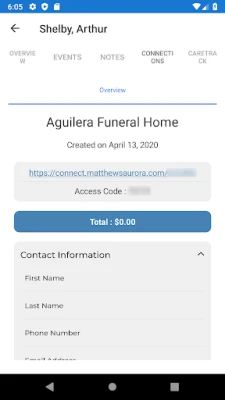 For funeral homes who subscribe to Matthews Aurora Funeral Solutions Family Connections program, funeral directors can create new cases, send the login information directly to families, and review arrangement selections made by families.