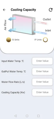 No need to wait till you go back to your computer to do the calculation… Cooling Capacity tool is providing all necessary calculations without the need of the any PC. Cooling Capacity tool will do the calculation for you for any input values are available for you…for example it can calculate the cooling load capacity if you have (inlet temperature, outlet temperature, & water Flow), also it can calculate water Flow if you have (inlet temperature, outlet temperature, & cooling capacity)… and so on. If you have any comments please don’t hesitate to contact Us. Yours: TALO tech team.