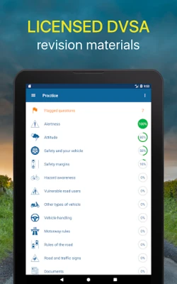Driving Theory Test 2025 UK includes all revision questions, answers and explanations, licensed by DVSA (the people who set the test). Couple it with an intuitive interface and it becomes an ideal practice tool for the UK Driving Licence Test!
