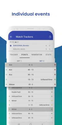 Each push notification you receive will inform you of the current match status and score and you will receive one at the beginning of the match, at the end of each set, and at the end of the match. You can also use push notifications to transfer match ownership by selecting the person you want to transfer the match ownership to. That way tracking a match can be continued on a different device in a matter of seconds.