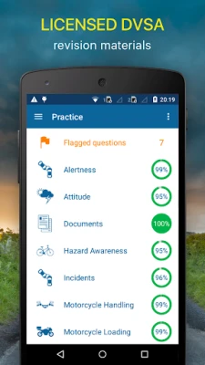 Motorcycle Theory Test 2025 includes all revision questions, answers and explanations, licensed by DVSA (the people who set the test). Couple it with an intuitive interface and it becomes an ideal practice tool for the UK Motorbike Theory Test!