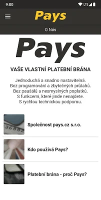 Aplikace Pays usnadňuje správu a ovládání platební brány obchodníkům. Prostřednictvím aplikace se můžete přihlásit do své administrace, kontrolovat příchozí platby, provádět vratky, zasílat potvrzení zákazníkům. Lze také přímo stahovat měsíční výpisy, zadávat platební předpisy a platební odkazy. Velmi jednoduše můžete provést okamžitý převod tržeb na svůj bankovní účet.