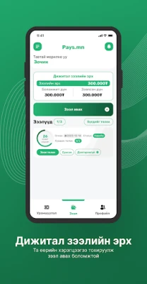 Pays is a loan service that allows you to repay a loan of up to MNT 50,000-2,000,000 anytime, anywhere, anytime on a regular schedule, depending on your circumstances.