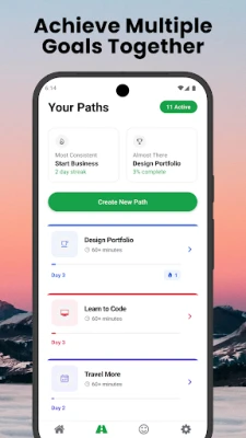 Resolution Path is your intelligent companion for turning goals into lasting habits. Using advanced AI technology, we create personalized 90-day paths that guide you step by step toward your goals.